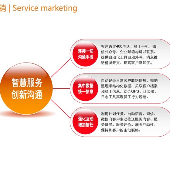 客户通过400电话、员工手机、微信公众号、企业邮箱均可以联系。提供自动化工具自动外呼、消息推送精减开支、提高客户感知度。